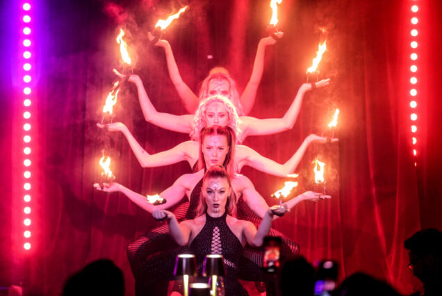 Live entertainment: dancers, musicians, fire shows, and DJs