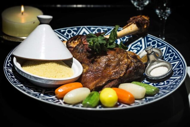 Dinner with Moroccan specialties, fusion dishes, and vegetarian options
